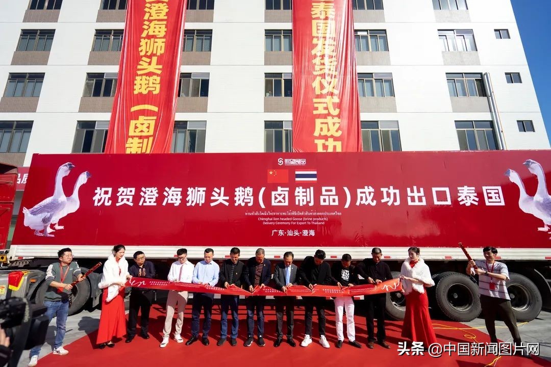12月16日,广东省汕头市,狮头鹅卤制品出口泰国发货仪式。