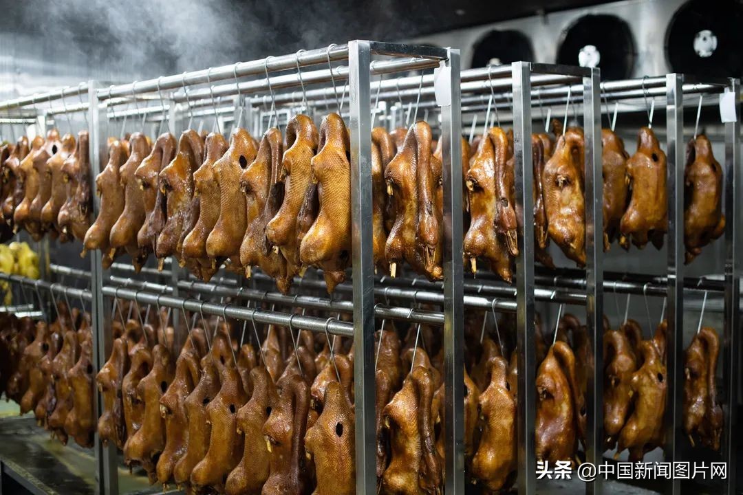 12月23日,广东省汕头市,工作人员取出卤制的狮头鹅。