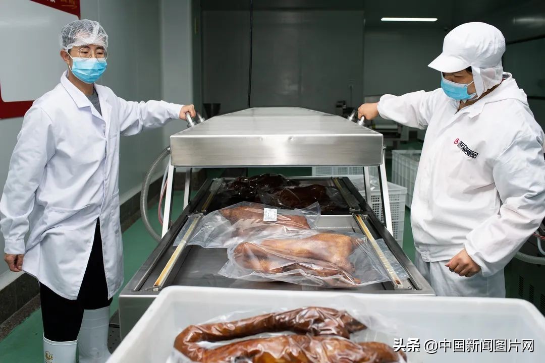 12月23日,广东省汕头市,工作人员对卤制的狮头鹅进行真空包装。