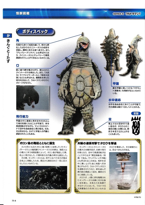 生活在欧隆岛上的巨大龟怪兽,和托塔斯王后是一对夫妻。托塔斯王与托塔斯王后都是非常温顺友好的怪兽,本性善良。在托塔斯王后和孩子都被人类所捕获后,托塔斯王便追击而来,对人类展开猛烈地报复。最后被泰罗 和赛文等奥特战士带离地球,前往适宜居住的行星生活。