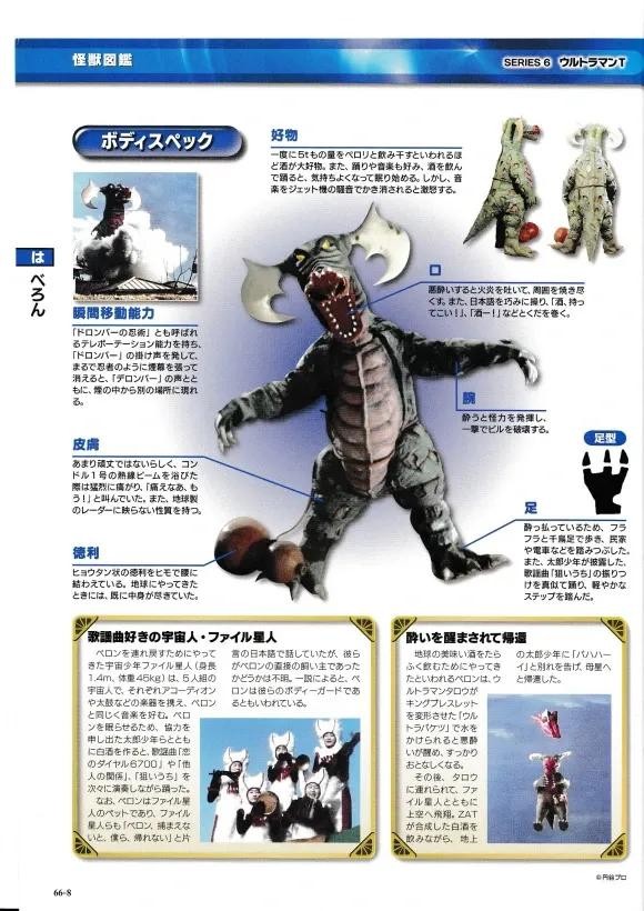 妄图夺取维生素C的神秘外星人残留在地球上的怪兽,在吃蔬菜瓜果、汲取维生素C后急速成长,口吐非常恶心的绿色液体作为武器。最后被泰罗用盐腌制缩小后送走。