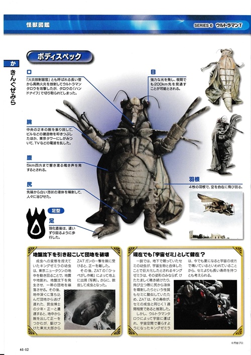 栖息在武藏野的巨型住宅区地底的巨大蝉,经历过漫长的幼虫时代之后羽化为成虫,引发强烈的地震并来到地面,发出尖锐且猛烈地鸣叫声,引起所在地周遭住户的愤怒而遭到攻击,最后在和泰罗奥特曼的战斗中被放逐到宇宙之中。