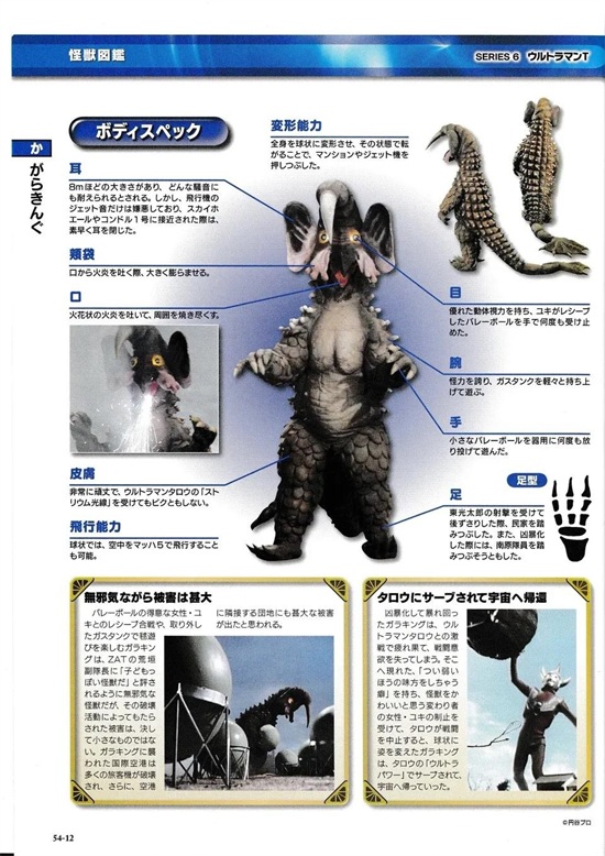 将身体变化为球形来到地球的宇宙怪兽,具有较高的思考能力和好奇心,以口中喷出的火花为武器。喜好球类物品,曾袭击了瓦斯基地的瓦斯罐,后来还和人类进行长时间的排球较量。因为讨厌飞机地噪音而对地球造成多起破坏,但由于本质上并不是邪恶的怪兽,最后被泰罗奥特曼驱逐回到宇宙。