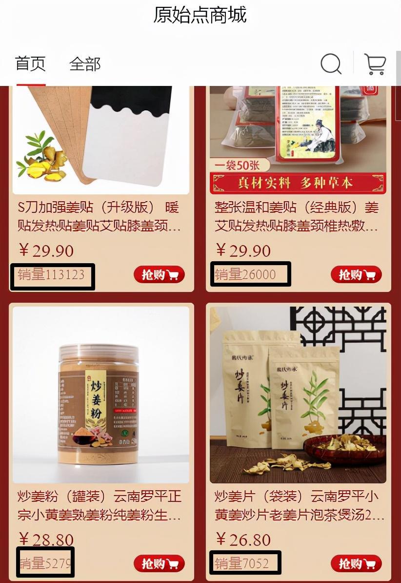 除此之外,原始点还依靠商品售卖来敛财。仅在原始点的网店内,“姜”产品就售出25万件,销售额超过500万元。线下一件温敷服890元,450g售价130元……