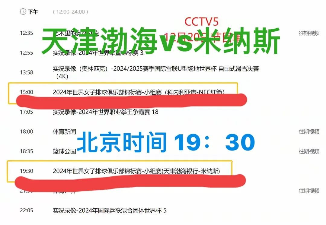 12月20日中央5台直播预告:CCTV5直播女排世俱杯!赛程出炉!