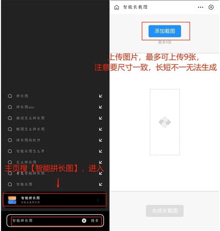 打开软件,在搜索框内搜【智能拼长图】,选择相应的图标,进入