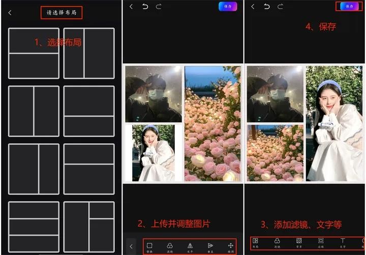 操作也是贼啦简单,新手也能快速上手,还可以对图片加滤镜等,拼图也要美美哒~