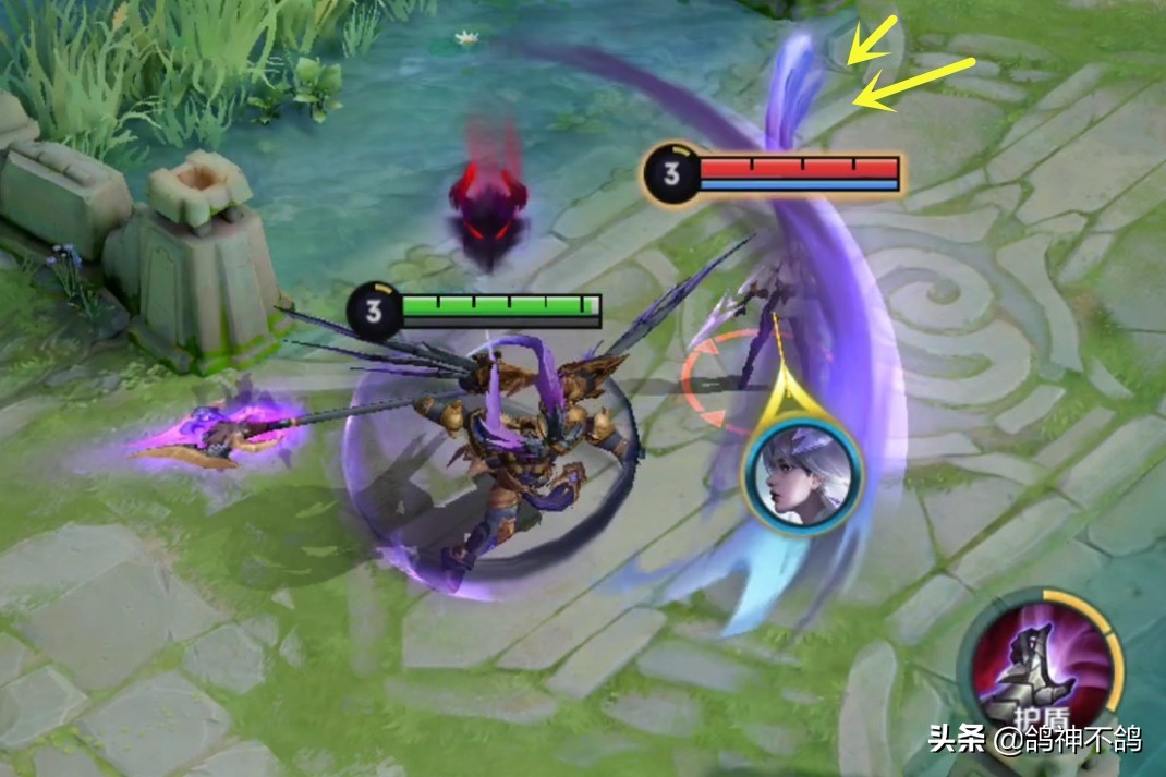 第2点是一个皮肤新增的小细节,吕布附魔之后进行攻击时,敌人头上会出现一个灵魂被抽取的特效。一缕紫色的魂魄随着吕布的攻击依次抽离,让原本就很明显的普攻特效变得更加有排面,同时也加强了打击感。