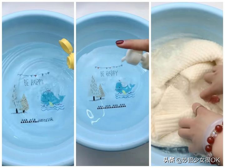 新买来的毛衣穿着扎人不说,皮肤还会发痒,严重的话会导致过敏。因此新买的毛衣先别急着上身穿,我们准备一盆冷水,在冷水中加入适量的白醋,再加一点衣物柔顺剂,没有柔顺剂就用护发素代替,然后把毛衣放入水里浸泡20分钟左右。