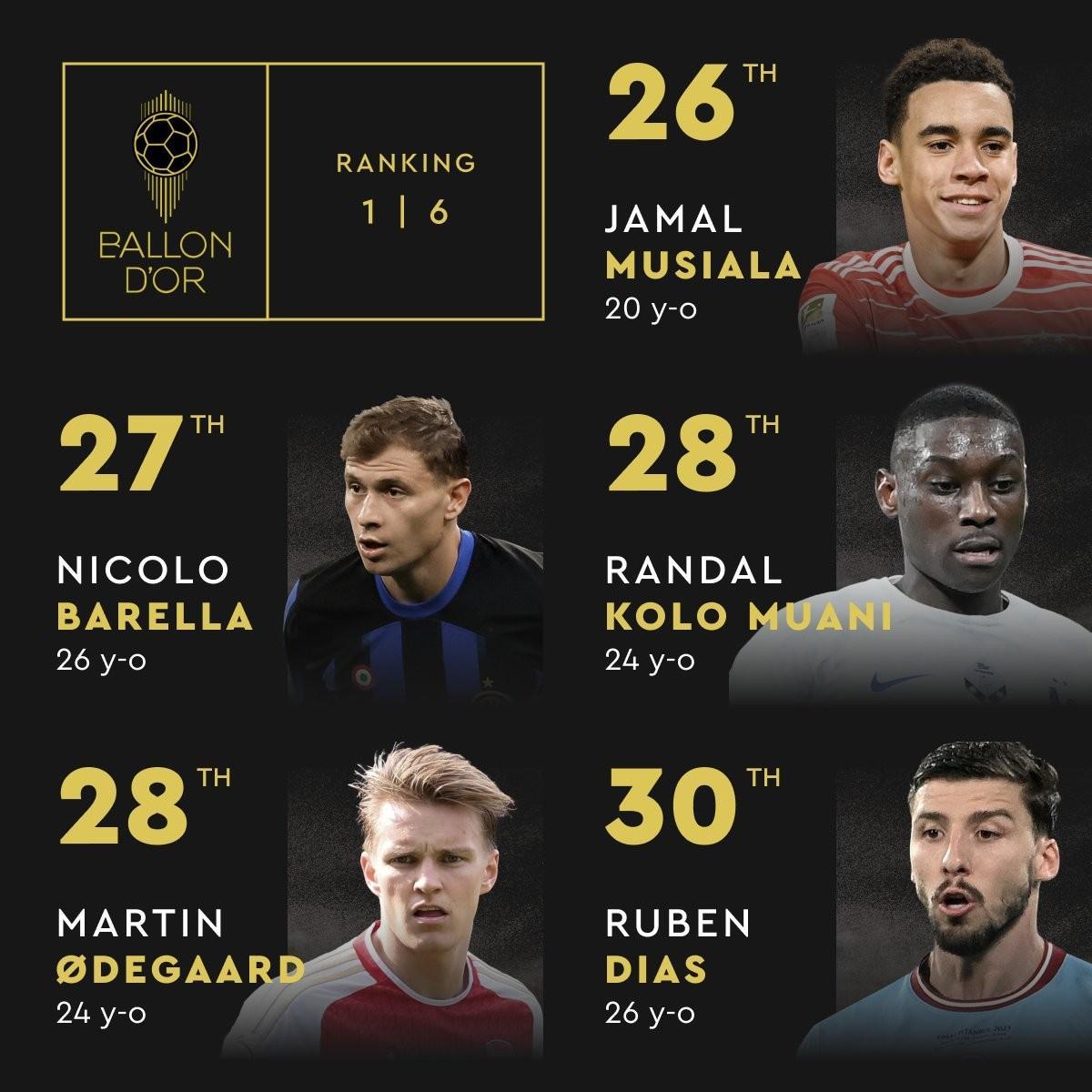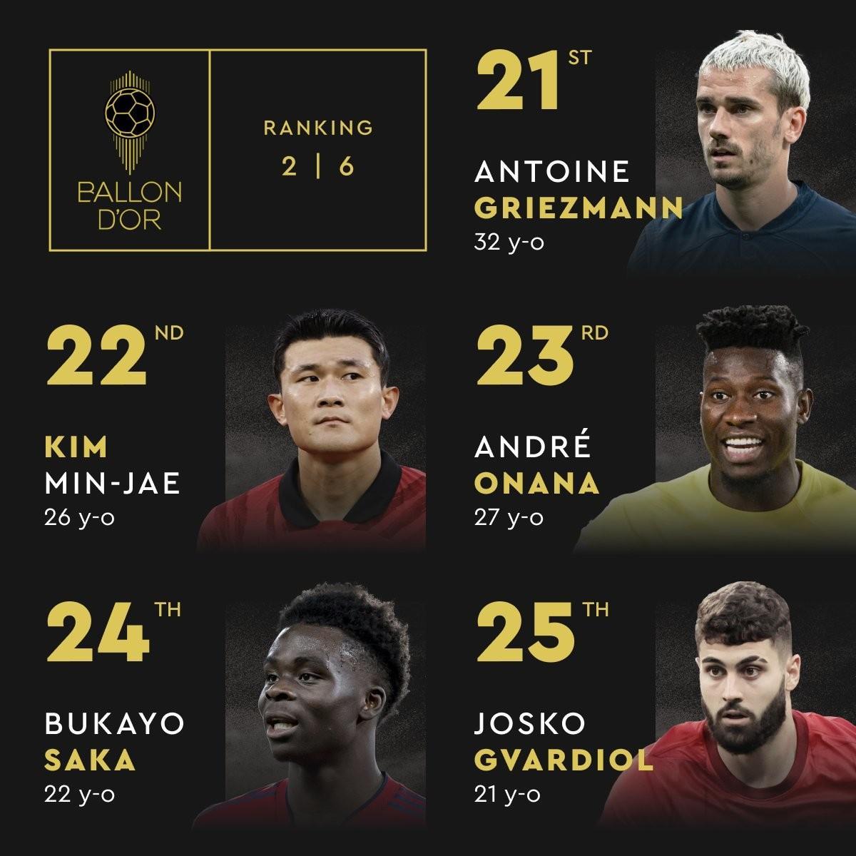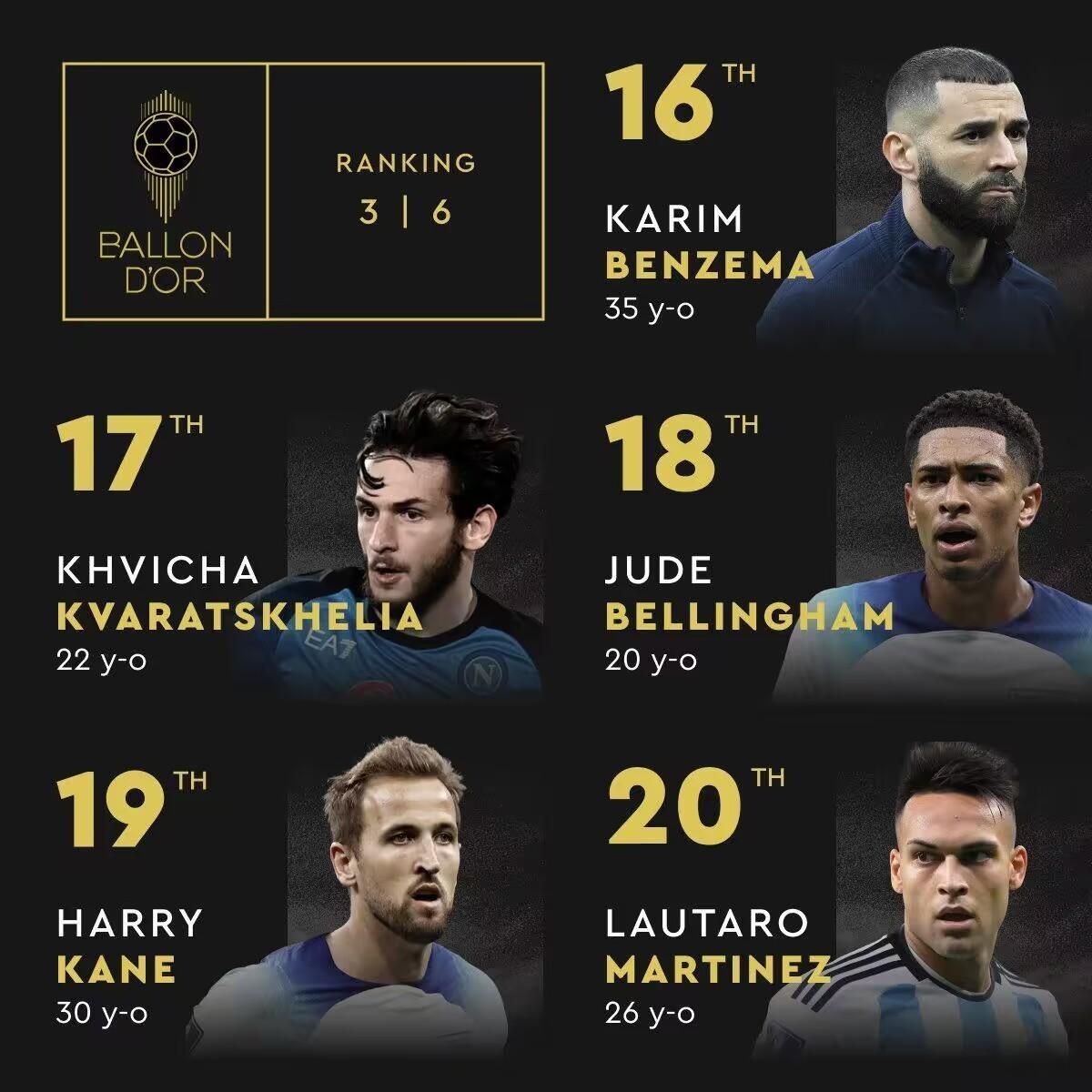 金球奖完整排名:哈兰德、姆巴佩分列二三,德布劳内第四