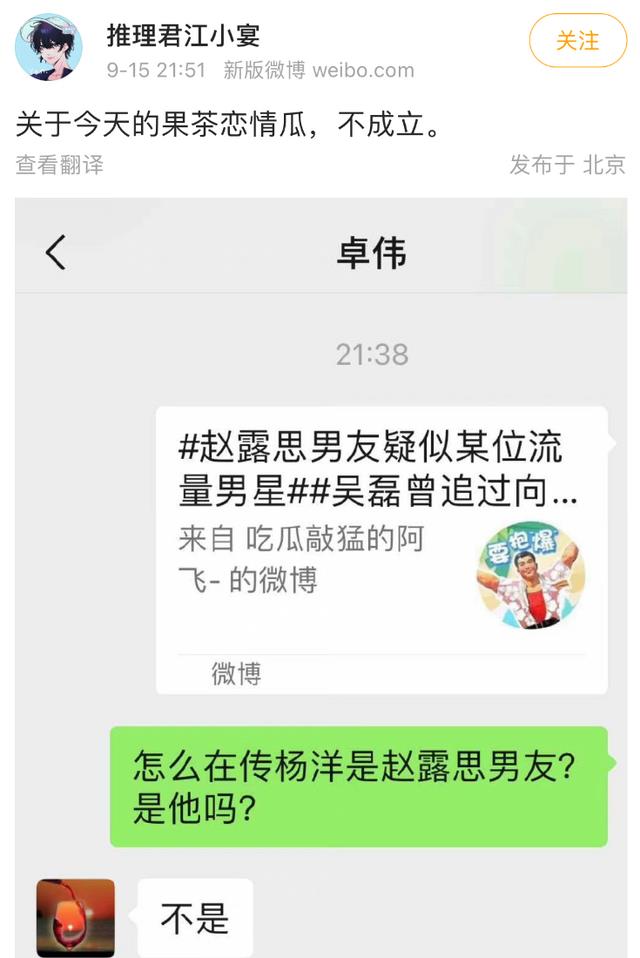 但是当天晚上江小宴就放出了和卓伟聊天记录,记录上显示辟谣说赵露思男朋友不是杨洋,假的!