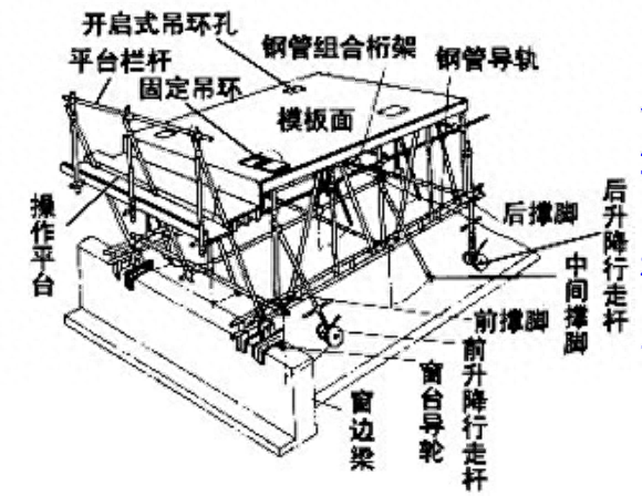 飞模分有支模飞模和无支脚飞模两类,国内建筑业常用有支腿飞模,设有伸缩式或折叠支腿。飞模有钢管组合式飞模、门式架飞、跨越式桁架飞模。