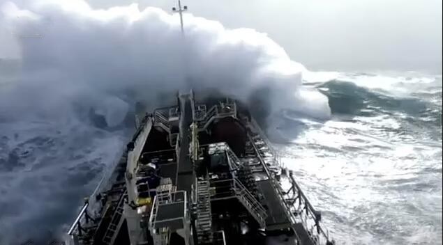 恐怖时刻!北大西洋风暴中油轮与巨浪搏斗 场面似惊悚影片
