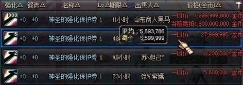 神圣的强化保护券价格已经略有上涨,但是价格可能还会继续上涨,目前存在免费的强化器活动,神圣的强化保护券必定需求量将会大幅增加,神圣的强化保护券市场有风险,适合有一定资金数量的冒险家。