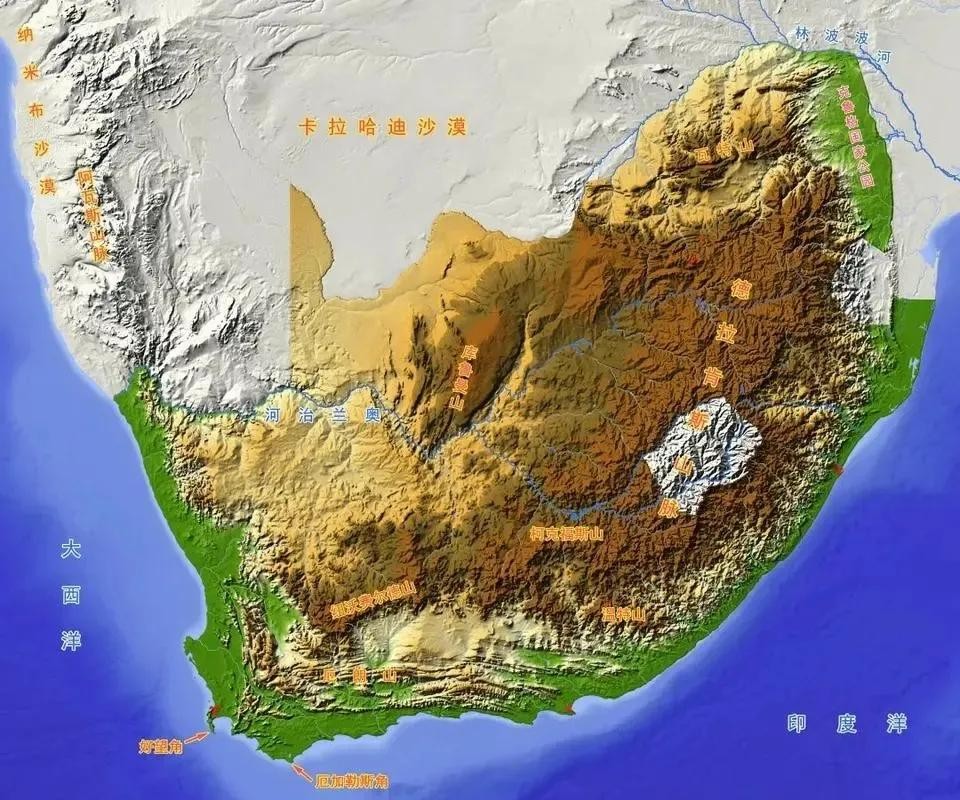 地处非洲高原的最南端,南、东、西三面之边缘地区为沿海低地,北面则有重山环抱。南非矿产资源丰富,是世界五大矿产资源国之一。铂族金属、氟石、铬的储量居世界第一位,黄金、钒、锰、锆居第二位。