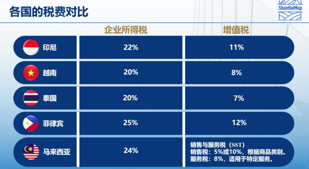 在增值税方面,印尼2025年1月1号会涨到12%,越南此前是10%,只不过这一年多有优惠政策,听说这个政策会持续到2025年6月份。至于越南2025年下半年增值税会不会恢复到10%,目前我们还不清楚,这就是越南、泰国、菲律宾在税收方面的大致情况。