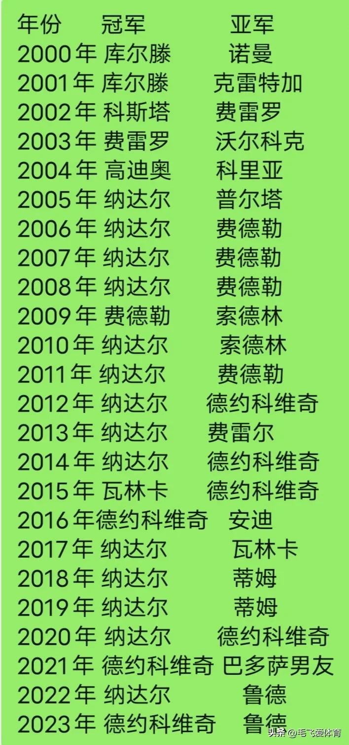 盘点历届法网男单冠亚军:纳达尔14冠傲视群雄 德约3冠 费德勒1冠