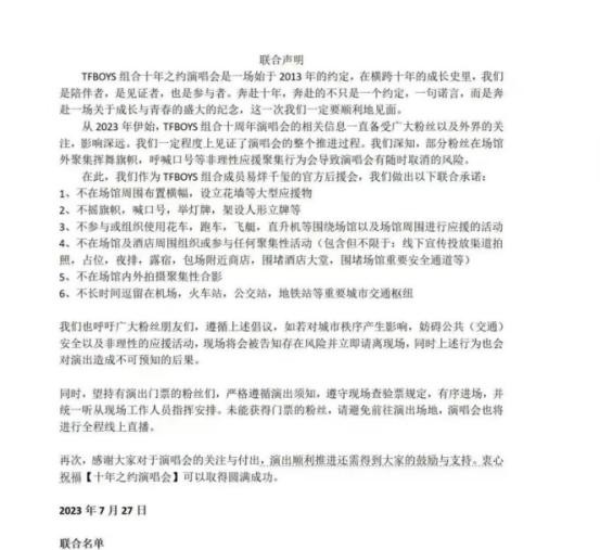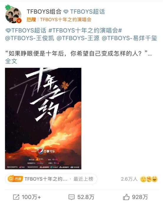 2023年7月21日,TFBOYS组合在微博上对此消息进行了证实,这条消息也让众多粉丝和网友热闹了起来,等待已久的十年之约即将来临,而这条消息也上了热搜,如今依旧能够看到。