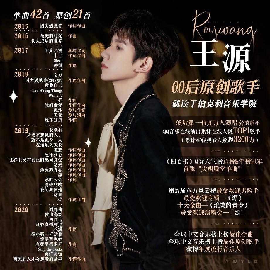 2019年,王源发布了自己的首张个人专辑《源》,他自己参与了几首歌的作词作曲,在伯克利音乐学院王源就学习了很多乐器,参加了许多和音乐有关的活动和节目,如今的王源已经自己在娱乐圈进行打拼,并开启个人巡回演唱会。