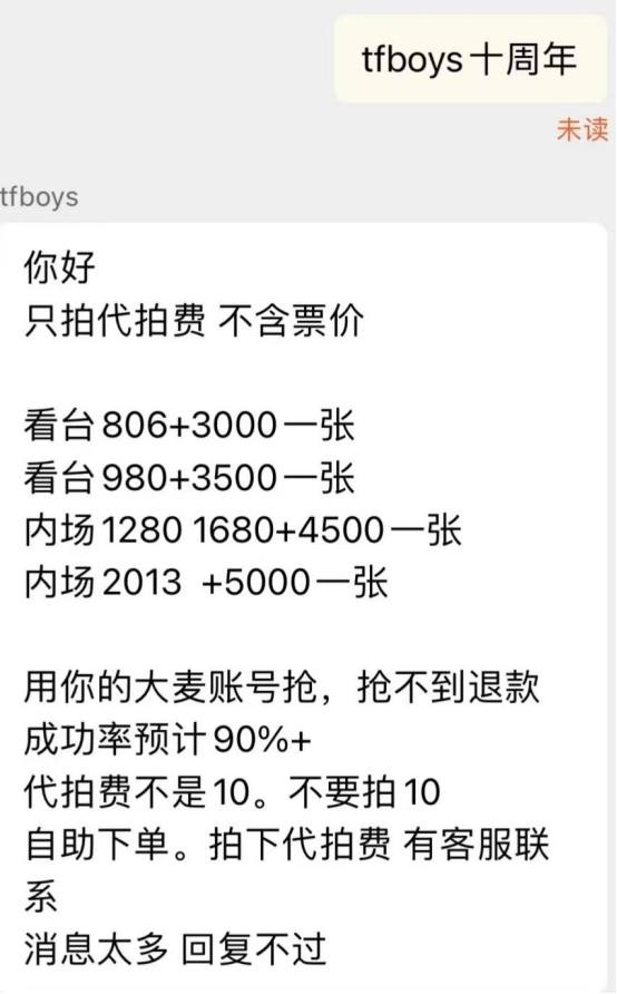 “知名组合TFBOYS”,近期在西安奥体中心举办十周年演唱会,门票被炒到天价,200万的门票代购费最低都3000,演唱会全程直播全机位99元,只有三天观看权。
