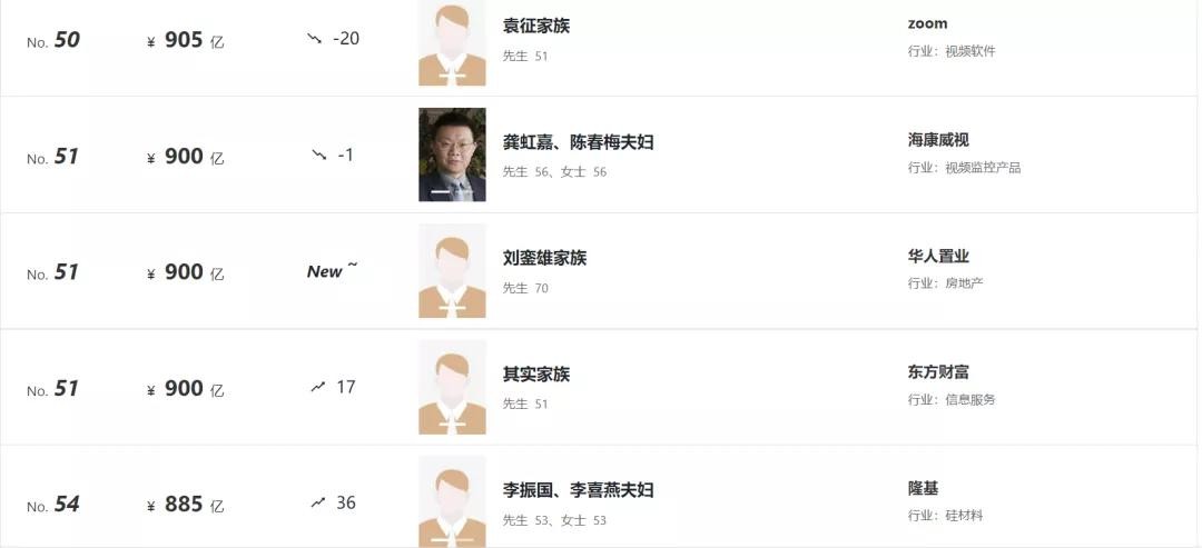 而“前任”榜首——海底捞集团的创始人张勇夫妇,滑落到了第四名,身价160亿美元。