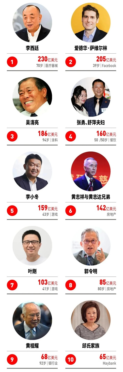 而且新加坡富豪的前十名中,包括李西廷和张勇,还有李小冬和叶刚,都是来自中国的新移民。