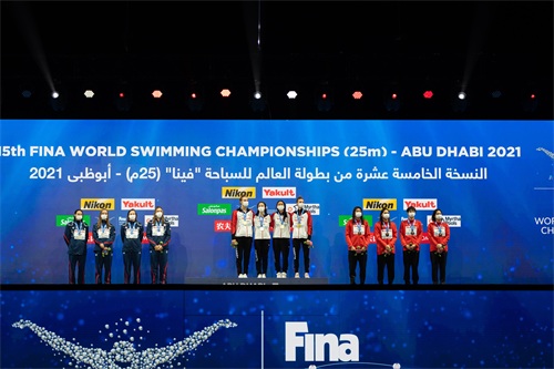 当日,在阿联酋阿布扎比举行的国际泳联世界短池游泳锦标赛女子4x200米自由泳接力决赛中,由李冰洁、程玉洁、朱梦惠和柳雅欣组成的中国队以7分39秒92摘得铜牌。