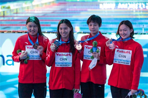 游泳——阿布扎比短池世锦赛:中国队夺得女子4×200米自由泳接力铜牌