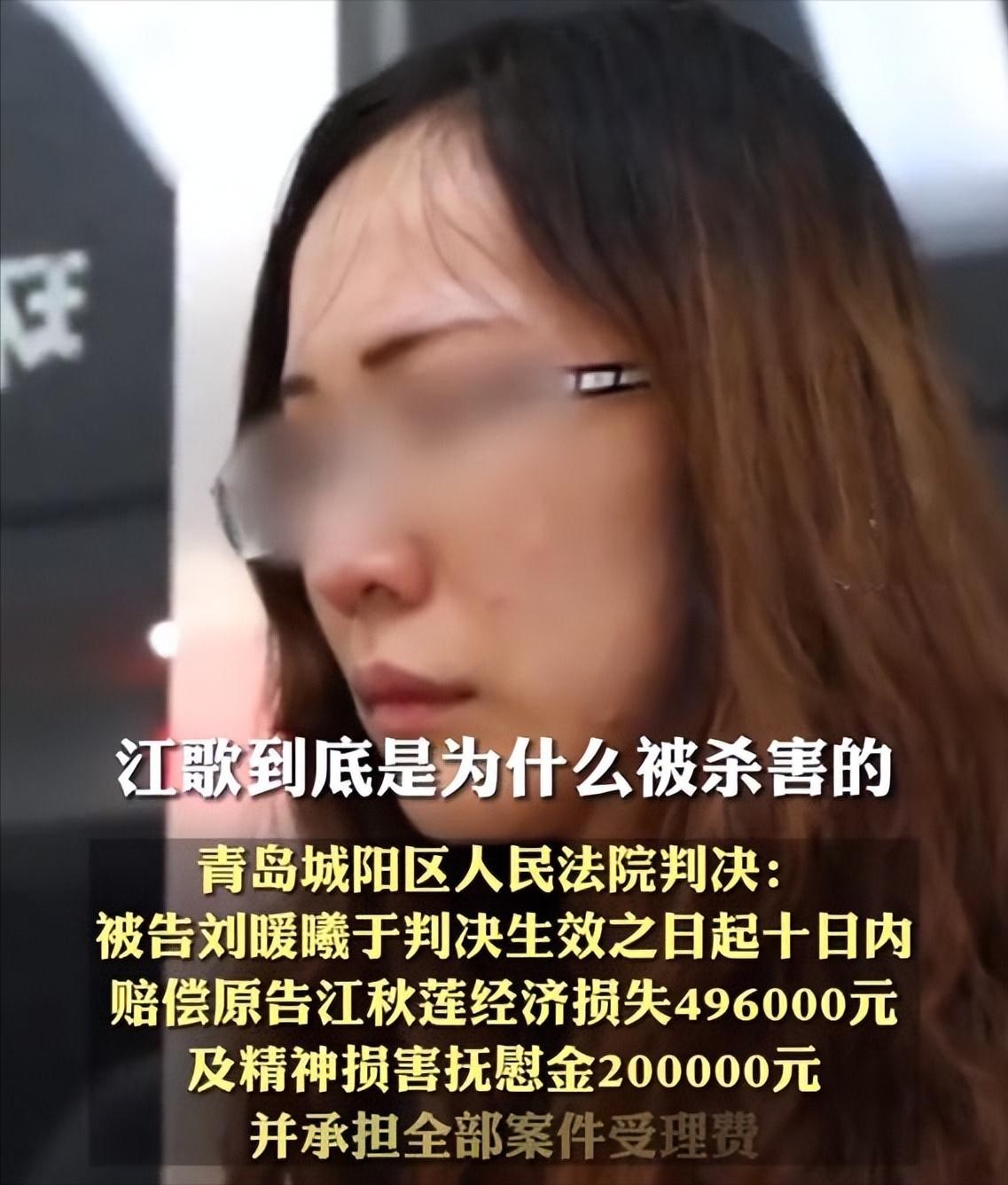 (3)2023年6月1日,江歌妈妈江秋莲通过社交平台宣布,刘暖曦(曾用名:刘鑫)侵犯江歌生命权赔偿款69.6万元已全部执行到位,后续将把这笔钱捐出。