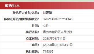 (2)2023年年1月11日,刘暖曦因未依据法律规定完成赔偿,而成为被执行人,执行法院为青岛市城阳区法院。