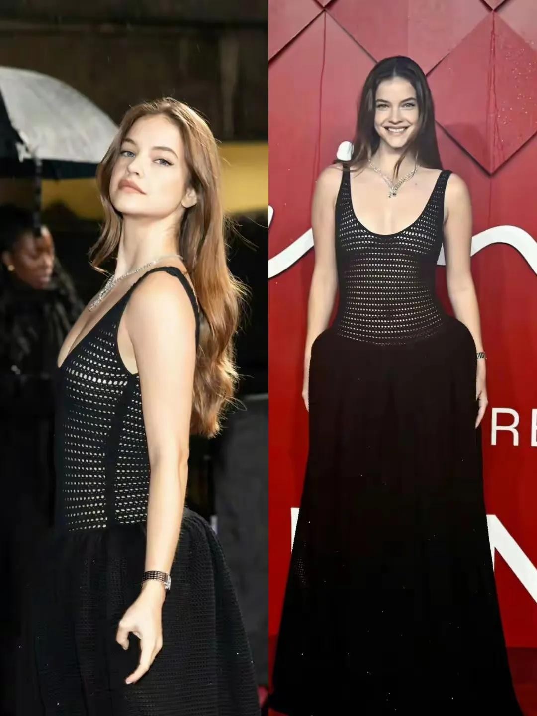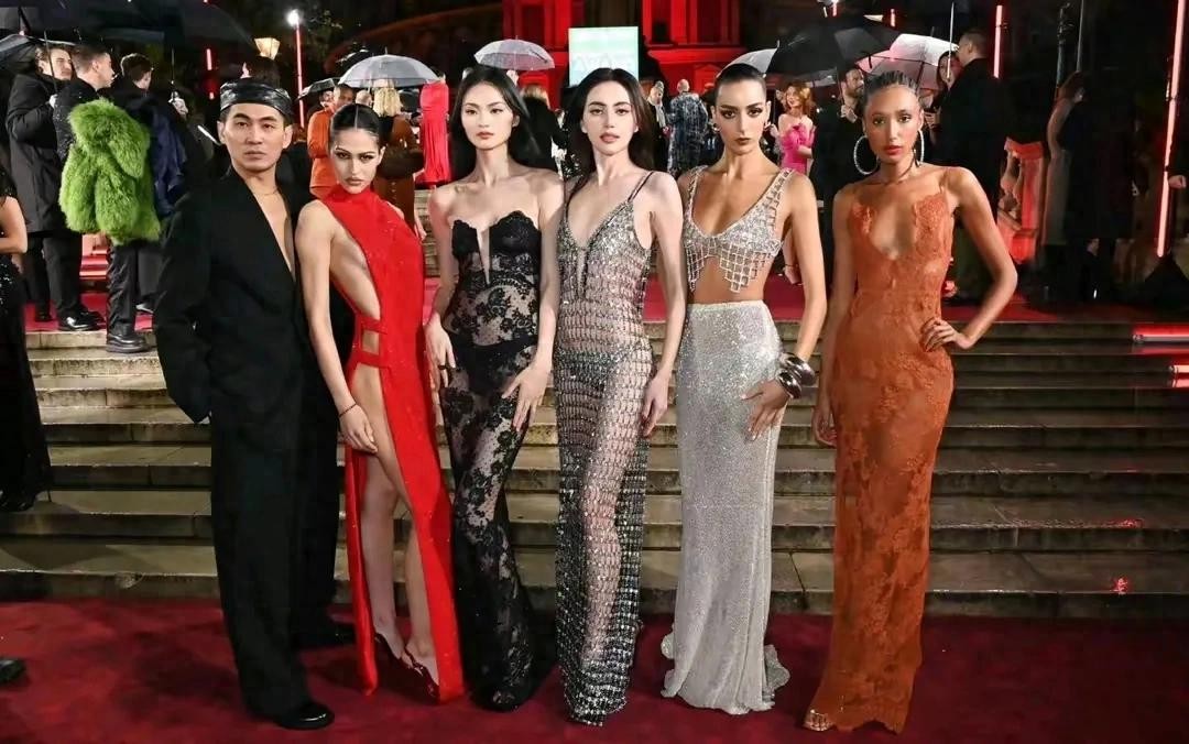 雨后的伦敦,空气中弥漫着湿润与神秘,红毯之上,灯光与雨滴交织出一幅幅梦幻画卷。而此刻,贺聪,这位来自东方的佳人,身着一袭由Self-Portrait精心打造的黑色薄纱抹胸长裙,宛如穿越时空的精灵,轻盈步入这光与影的盛宴。黑色薄纱轻抚过她曼妙的身姿,既透露出一丝丝性感,又不失那份东方的含蓄与高雅。娃娃脸与透视装的碰撞,不仅颠覆了传统审美的界限,更在东西方文化的交汇点上绽放出了独特的光芒,让人为之倾倒,赞叹不已。