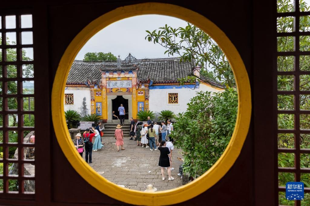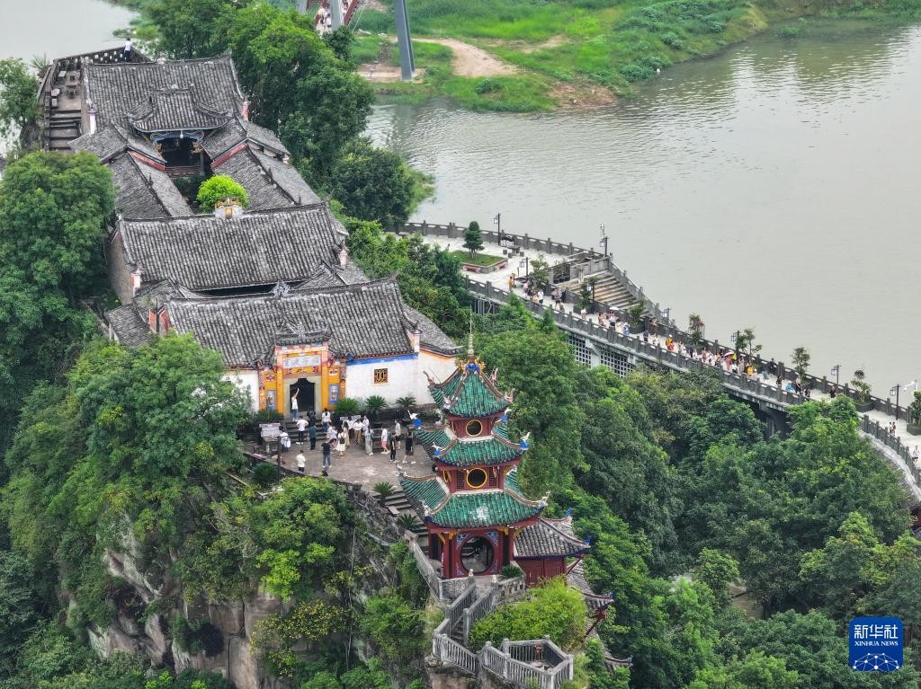 7月10日,游客在石宝寨景区内参观游览(无人机照片)。