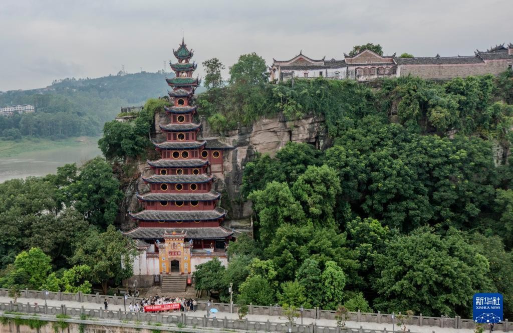 这是7月10日在重庆市忠县拍摄的石宝寨(无人机照片)。