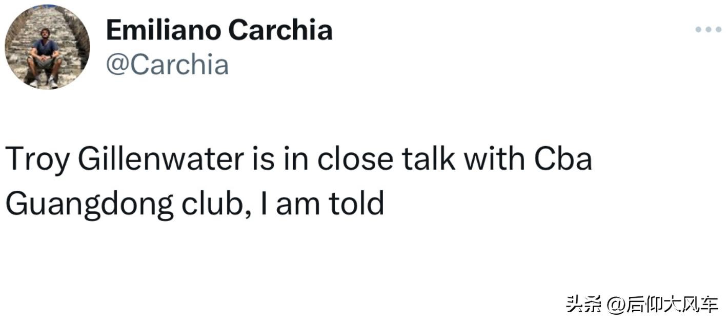在大多数所谓知情人都不敢透露广东队新援名字的情况下,国外记者站出来了,据欧洲记者Emiliano Carchia的报道,吉伦沃特正在和广东队密切洽谈,这是目前唯一有确实球员和广东队谈判的相关报道;