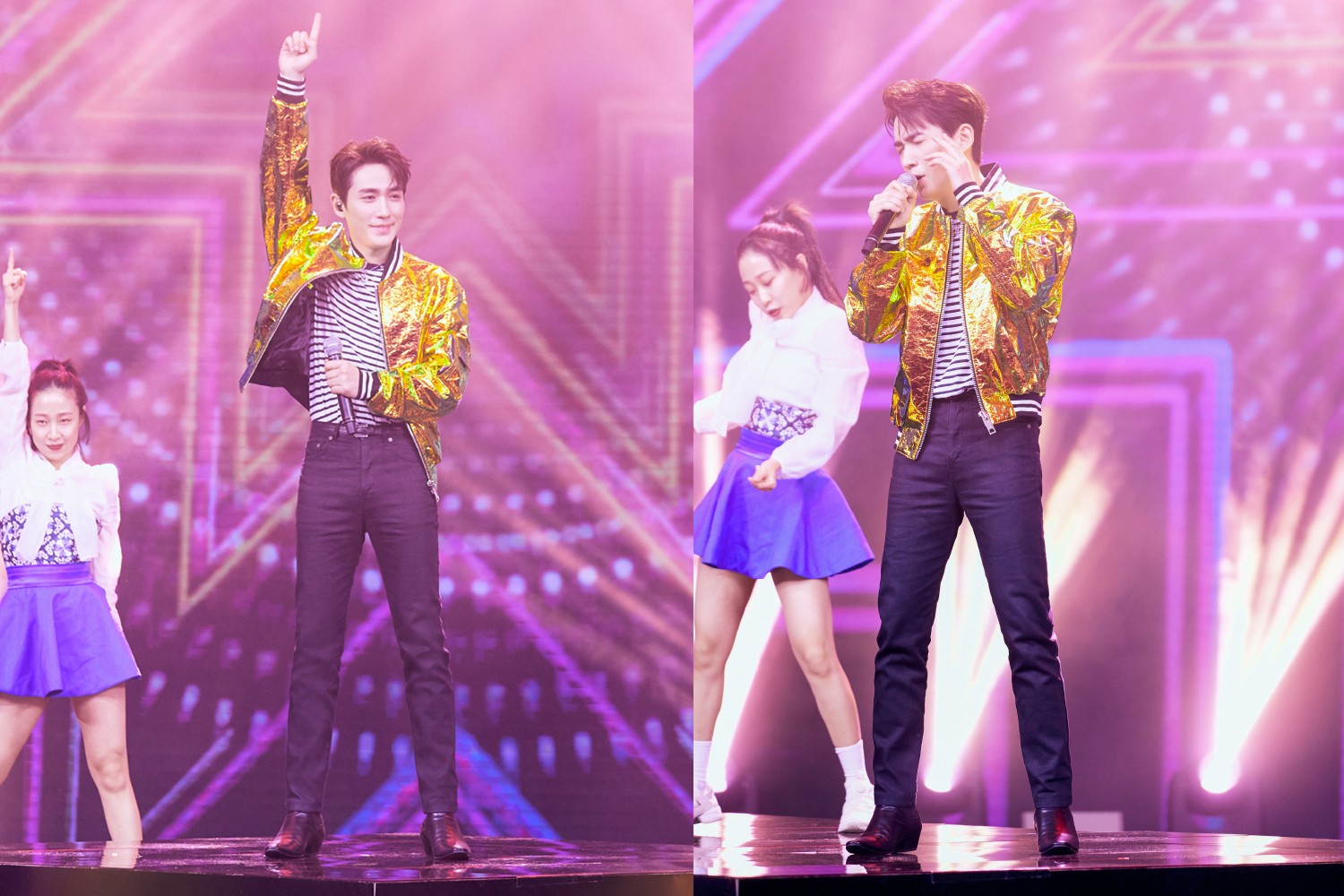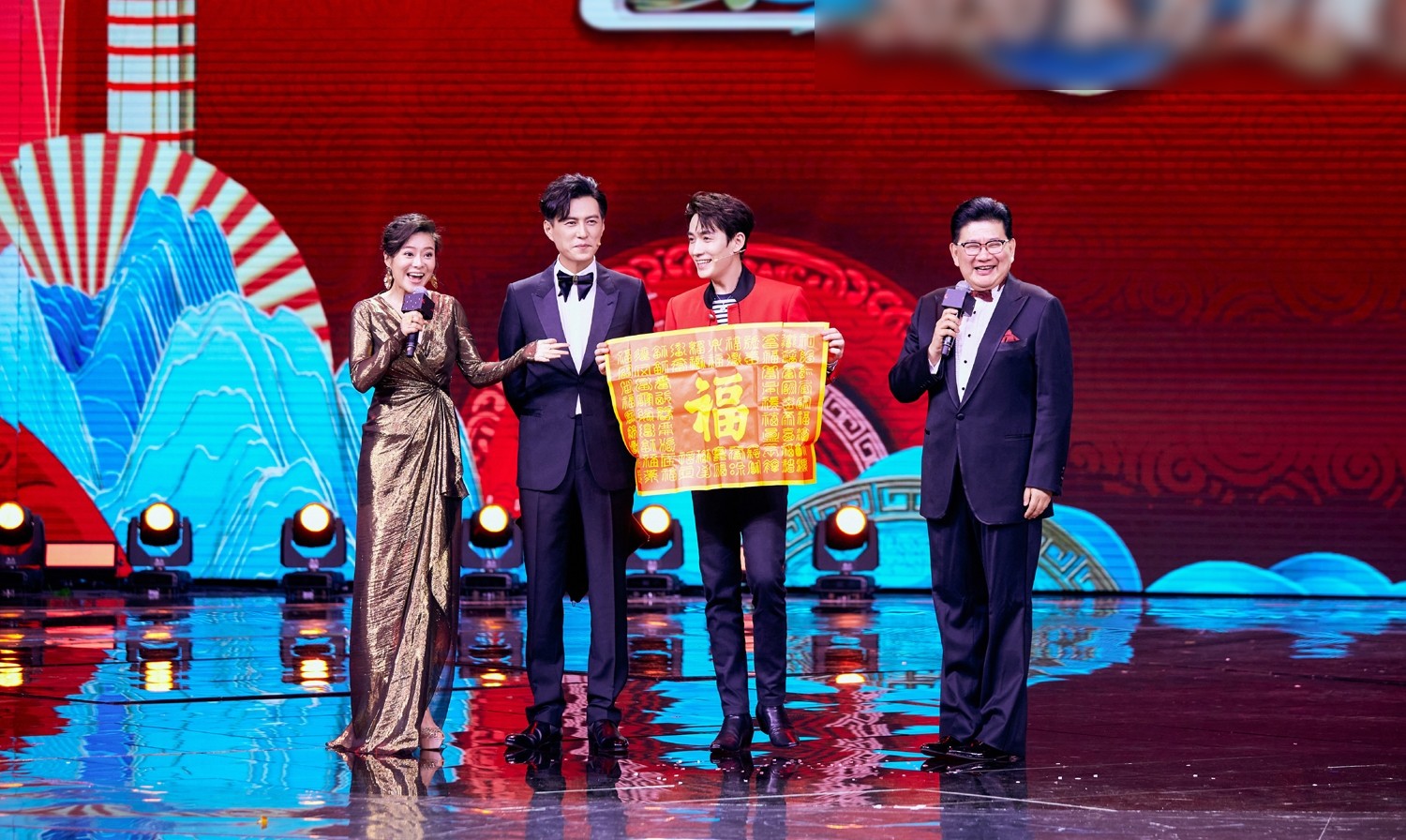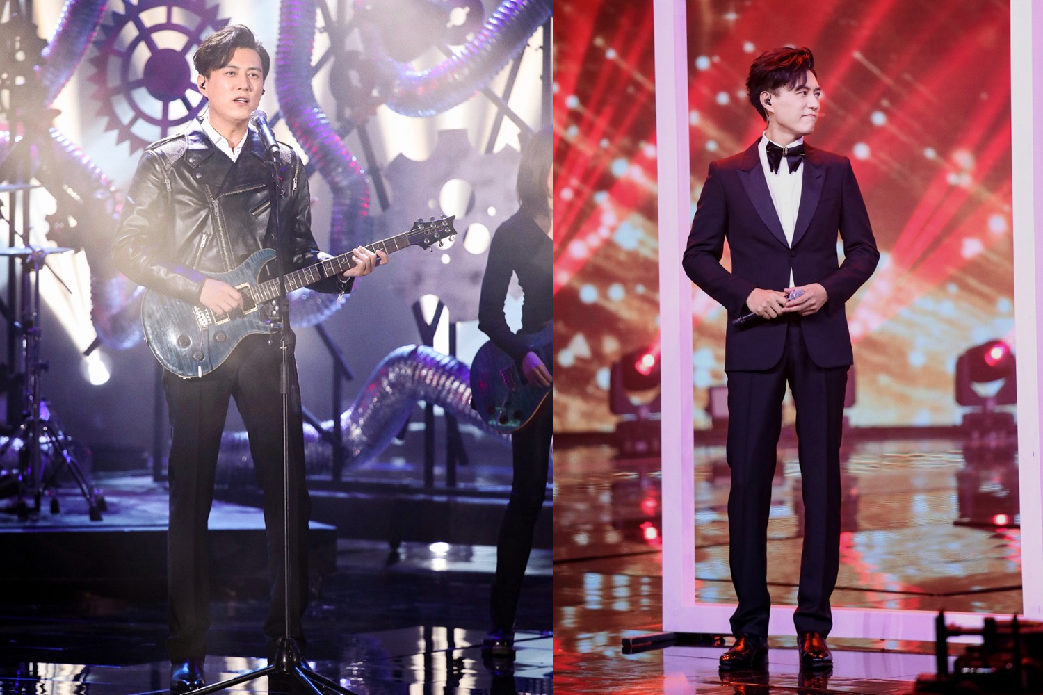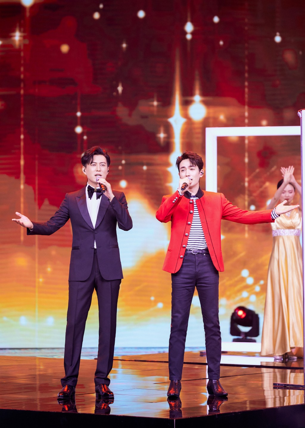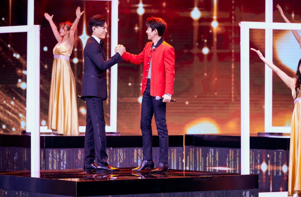 朱一龙金色夹克闪耀全场,再换红衣造型与靳东合唱,俩男神太养眼