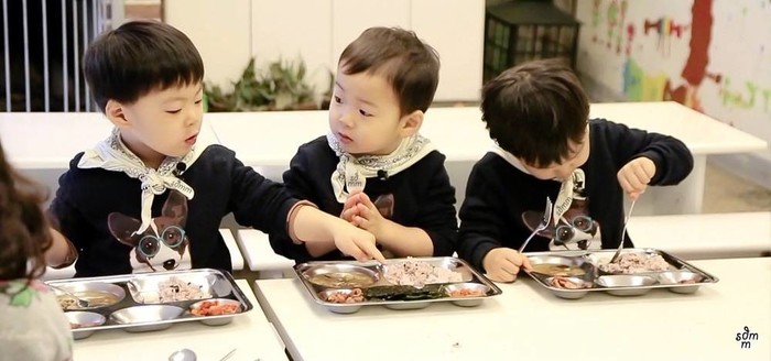 这是韩国艺人宋一国的三胞胎宝贝儿子:大韩、民国、万岁,他们于2014年7月参加韩国亲子节目《超人回来了》爆红。