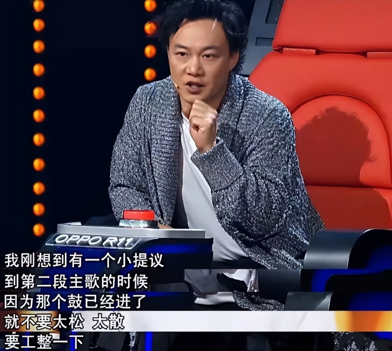 突然,陈奕迅的耳麦里,传来了节目组的声音:“你觉得刚刚那个唱的怎么样?”