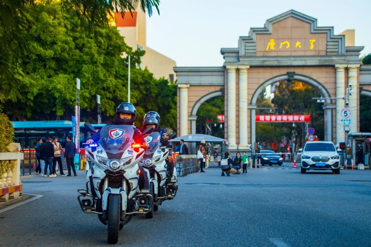 厦门市公安局思明分局骑巡队对厦门大学周边开展安全隐患排查。