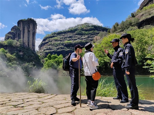 武夷山市公安局景区派出所服务武夷山景区游客。