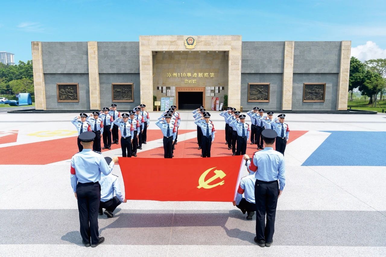 “漳州110”在“漳州110”事迹展览馆前重温入党誓词。