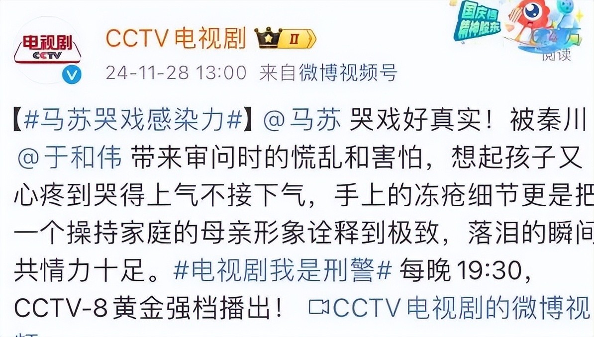 而马苏在《我是刑警》中的哭戏,却被誉为“教科书式”的表演,其感染力和真实性令人叹服。