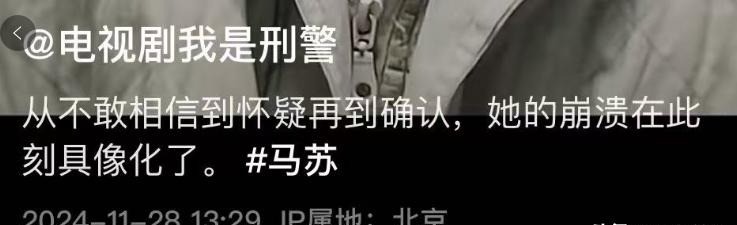 网友 “剧迷有感”:马苏在《我是刑警》里确实太出彩了呀,那哭戏真的绝了,把底层人的无奈和心酸展现得特别到位,感觉她就是那个为生活苦苦挣扎的白玲。这部剧能这么火,她的表演功不可没啊,希望她以后能带来更多好作品呢。