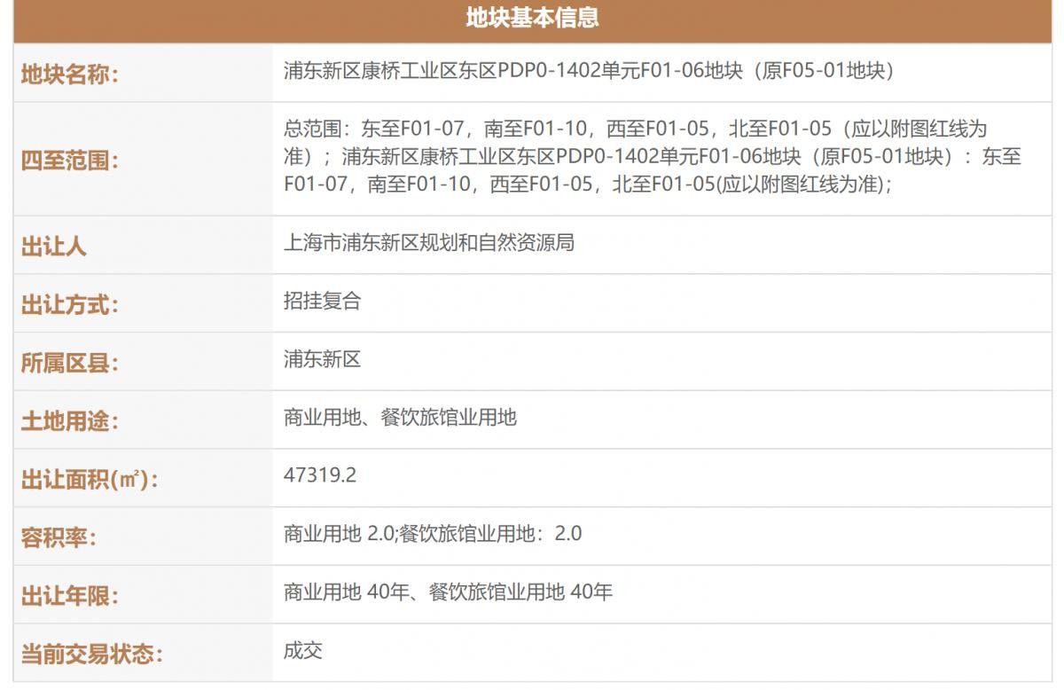 该地块信息显示,地块土地用途为商业用地、餐饮旅馆业用地,出让面积共47319.2平方米。从地图可以看到,该项目位于上海浦东新区张江科学城的康桥工业区,离上海迪士尼仅一站地铁。
