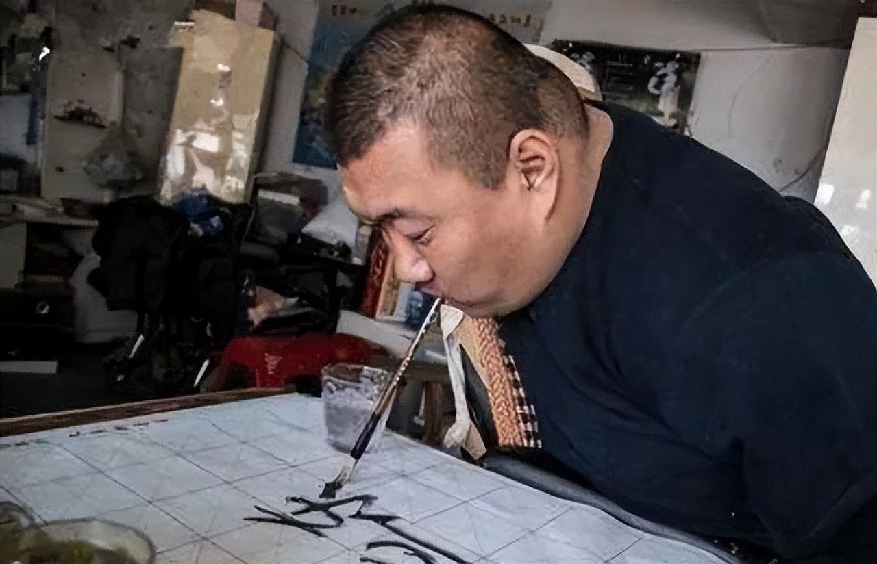 没有双手,那他就使用嘴巴来写字,对袁立东而言,嘴巴就是他灵活的双手。