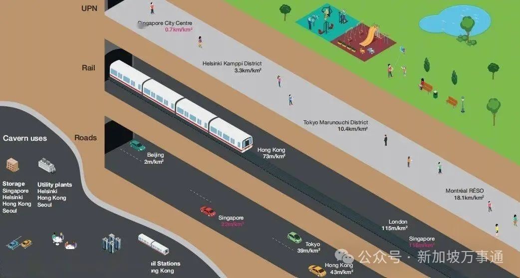 考虑到新加坡国土的稳定性,以及必要的地下原岩支撑面积,最终计算得出:新加坡的地下空间总面积,可以约等于国土面积的33%-50%,大概200-300K㎡。