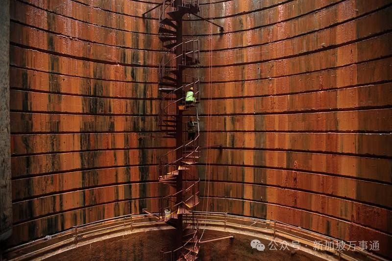 日常维护的工人们,需要经过直达裕廊岛地下储油库的150米旋转楼梯。