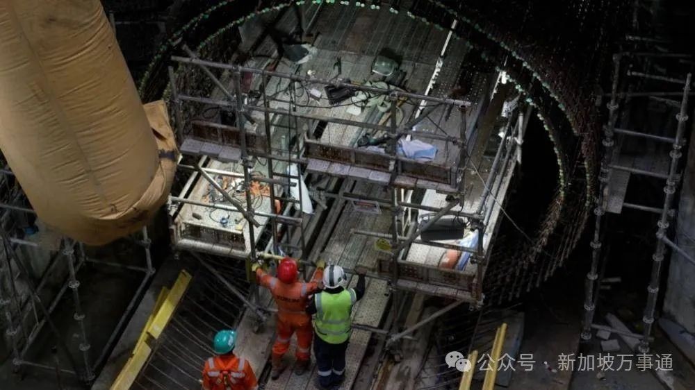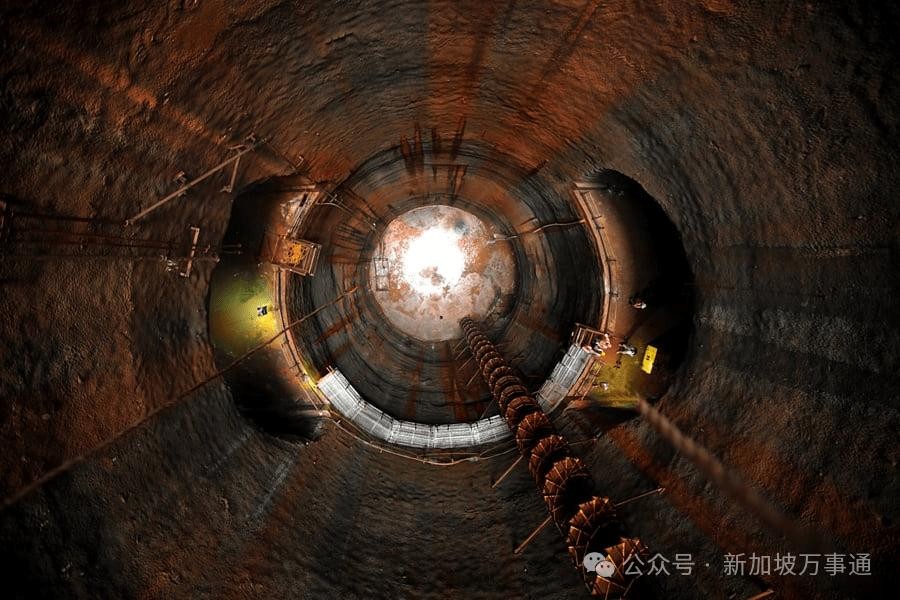 从图中明显能看到巨大的深井,这是新加坡在建设大型地下空间时的常用方式。大型机械设备和人员都将通过竖井进入地下空间。