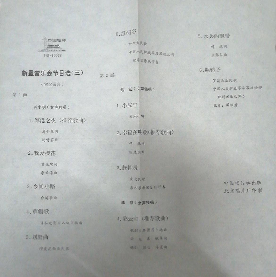 “新星音乐会”结束后,中国唱片社将音乐会的实况录音做了简单的处理后,灌制成两张一套的塑料薄膜唱片。小盘唱片3毛钱一张,大盘的5毛钱一张。