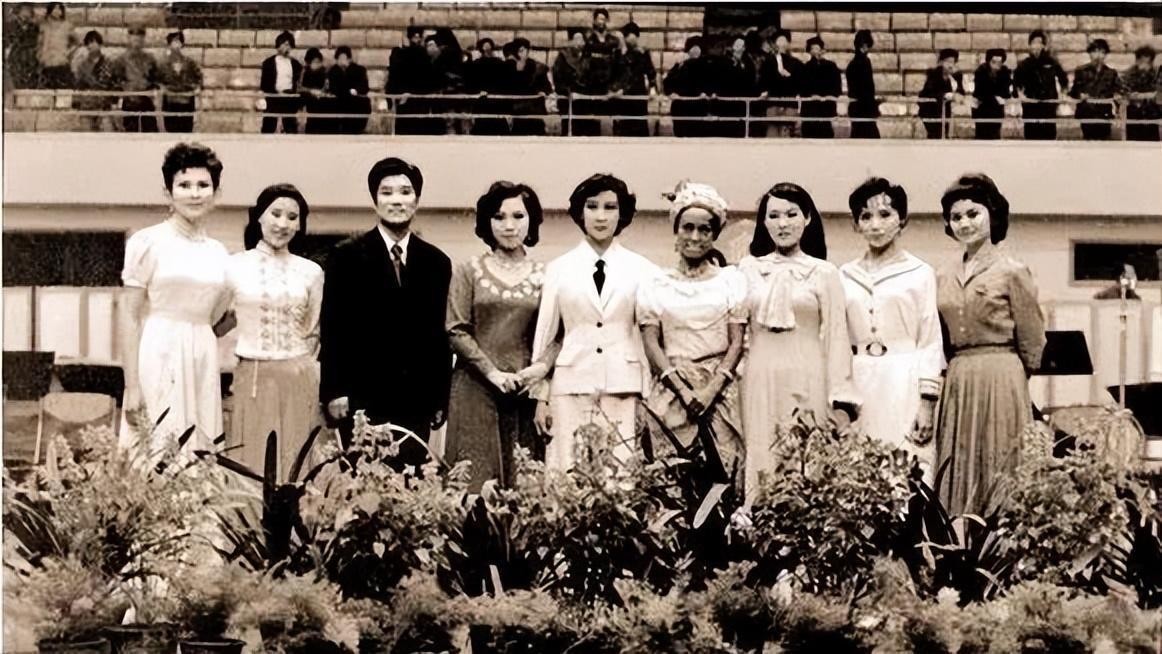 30年后重聚首,苏小明缺席,报幕员与7位歌手与王昆合影,与30年前站位一致
