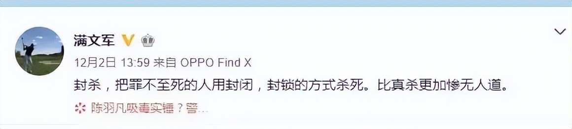满文军还在社交平台为他发声。